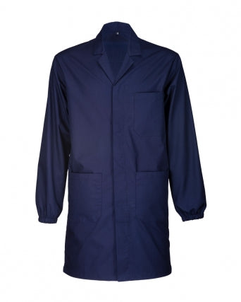 Camice da lavoro in cotone e poliestere 145 g/m2, chiusura centrale con bottoni coperti, con 3 tasche e maniche con elastici