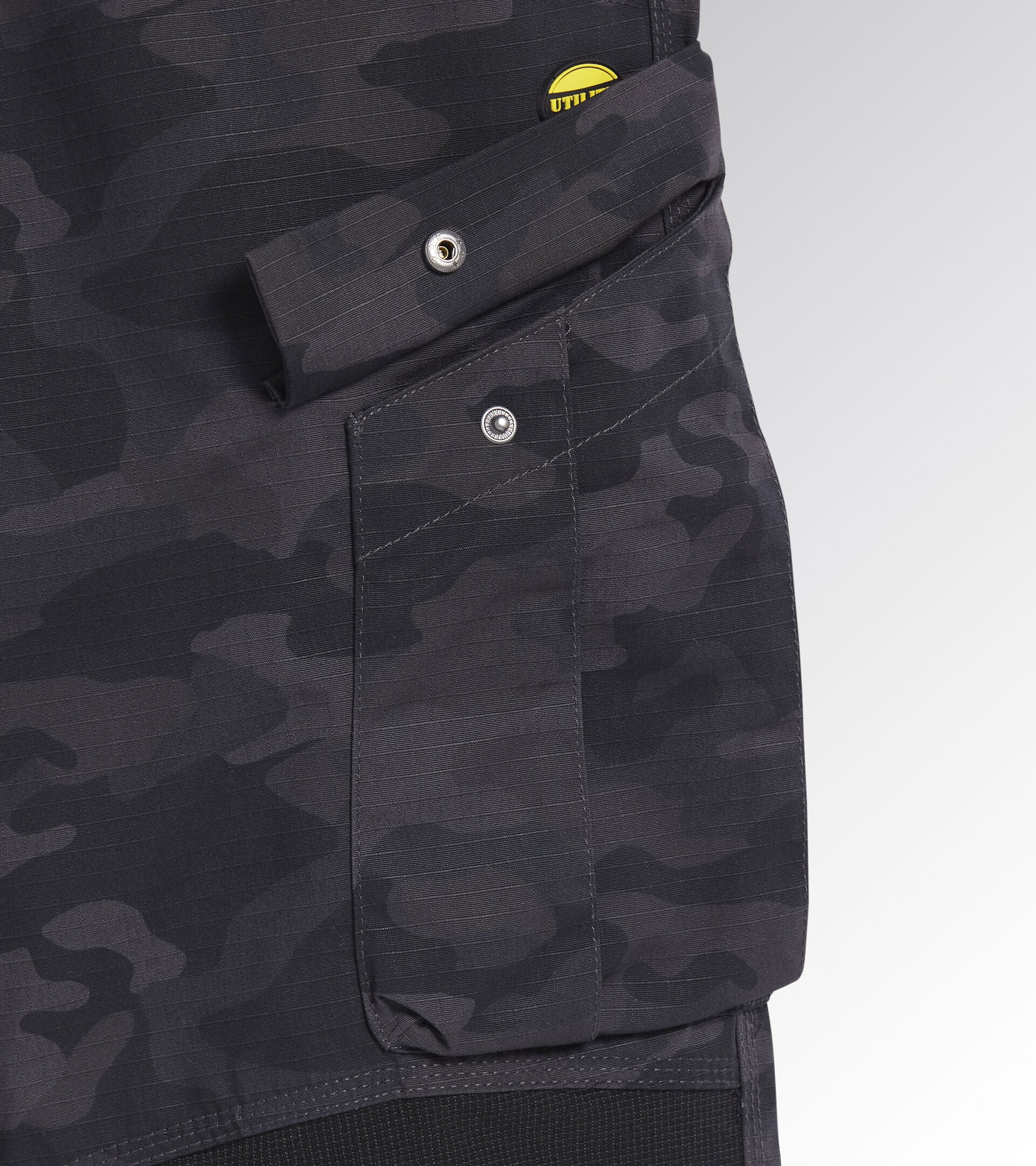 Pantalone cargo in materiale ripstop resistente motivo camouflage. Due capienti tasche laterali, inserto in materiale elasticizzato resistente, inserto in materiale elastico su cavallo e carrè dietro per maggiore libertà di movimento. Tripla cucitura.