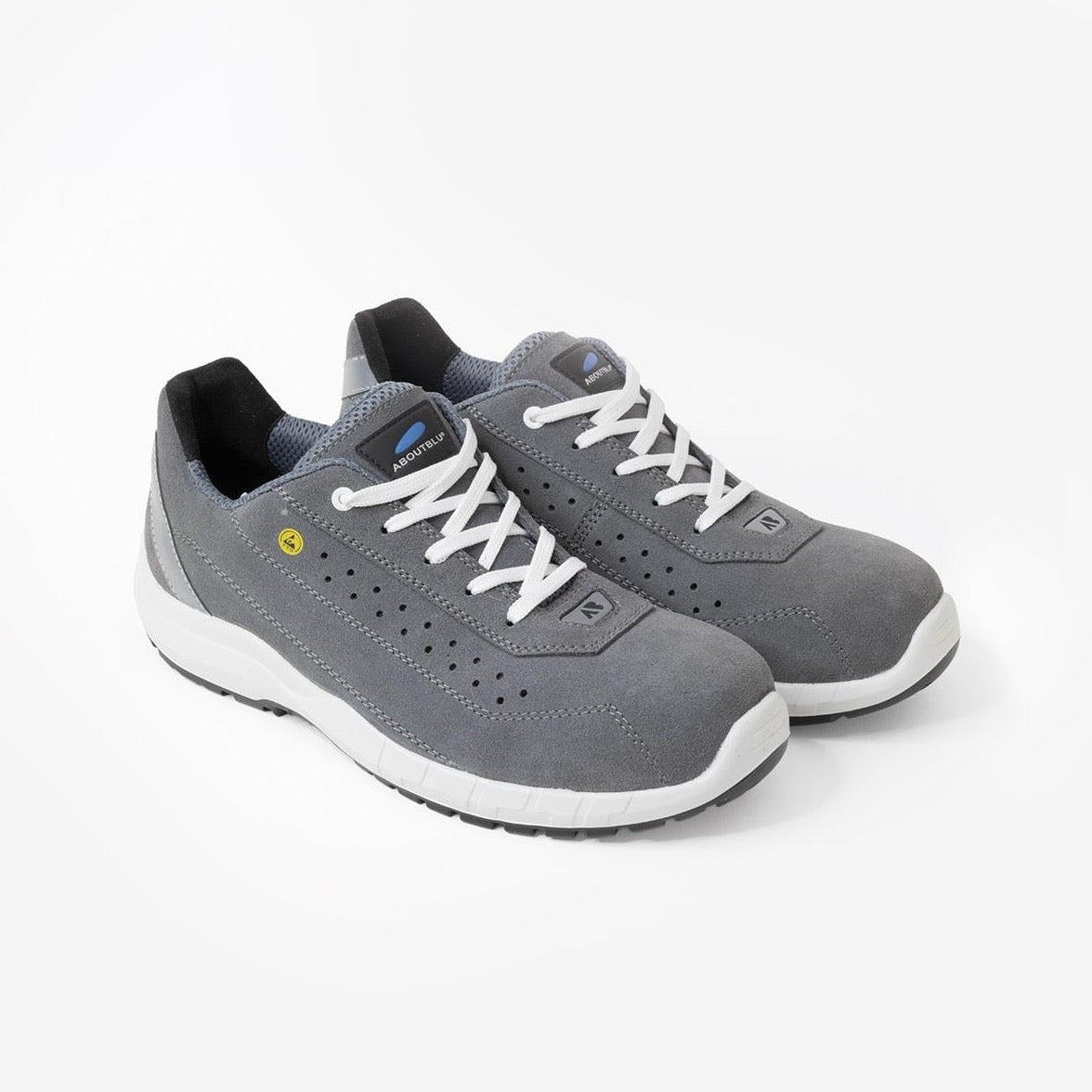 Scarpe antinfortunistiche con tomaia in pelle scamosciata forata traspirante. Idrorepellente e traspirante, resistente al taglio e all'abrasione, anti sfilo. Puntalino antiabrasione