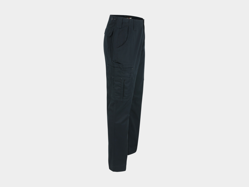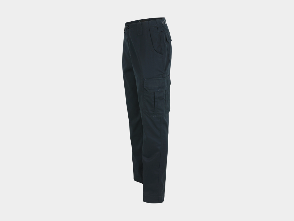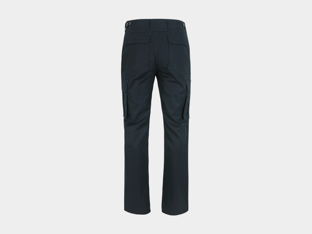 Sono presenti due tasche laterali, due tasche applicate sulle cosce, una tasca portametro e due tasche posteriori. L’orlo inferiore è estensibile per adattarsi a diverse esigenze di vestibilità.